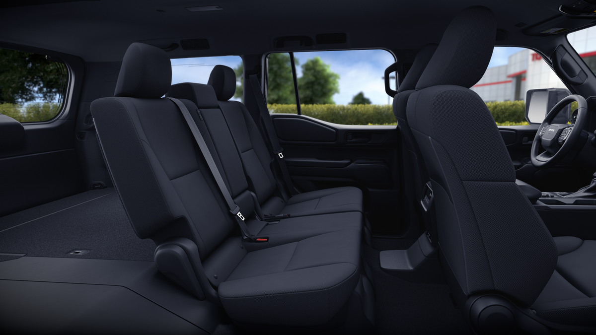 - Heated, fabric-trimmed seats; 6-way manual-adjustable front driver's seat, 6-way manual-adjustable front passenger seat with seatback pocket