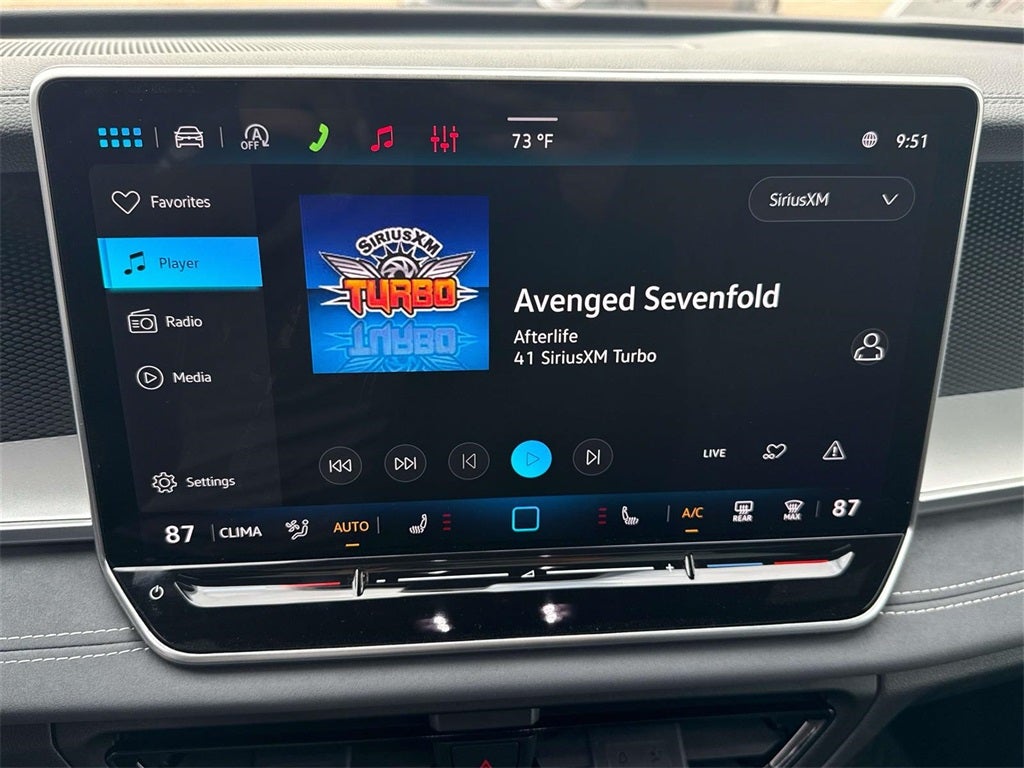 - MIB4 Composition Media Touchscreen w/AM/FM Radio -inc: WMA/MP3/FLAC player w/USB, 12.9" touchscreen multi-function center display w/backlit sliders, voice control, 6 speakers + center speaker (7 speakers total) sound system, capability for in-vehicle 4G LTE enabled Wi-Fi (cellular data plan required; includes limited trial), capability for connected vehicle services (capabilities for services vary; requires enrollment or subscription), Bluetooth® connectivity (for compatible devices), SiriusXM w/360L (w/3-month free trial subscription; 360L services require acceptance of Car-Net terms), App-Connect smartphone integration (w/Apple CarPlay, Android Auto and MirrorLink) via USB, wireless App-Connect smartphone integration (for compatible devices) w/multi-phone pairing capability, 45W fast charging (for compatible mobile phones and accessories) via USB in both rows and Qi wireless inductive charger, cooled, up to 15W (for compatible mobile phones and accessories) All connected vehicle services are subject to terms and limitations. Some services require a paid subscription. See dealer or vw.com/connected for important details.