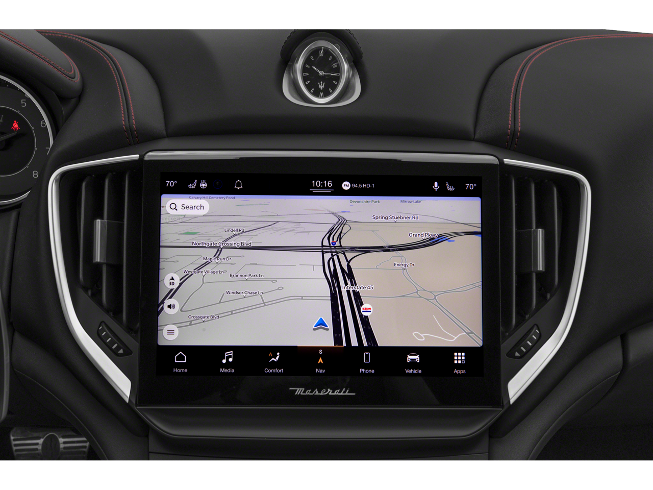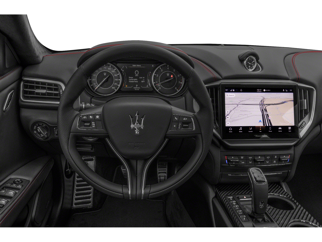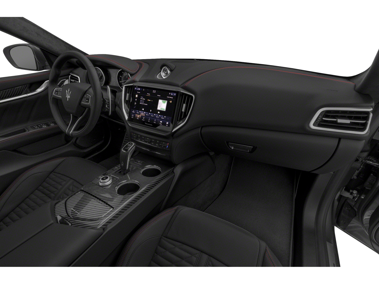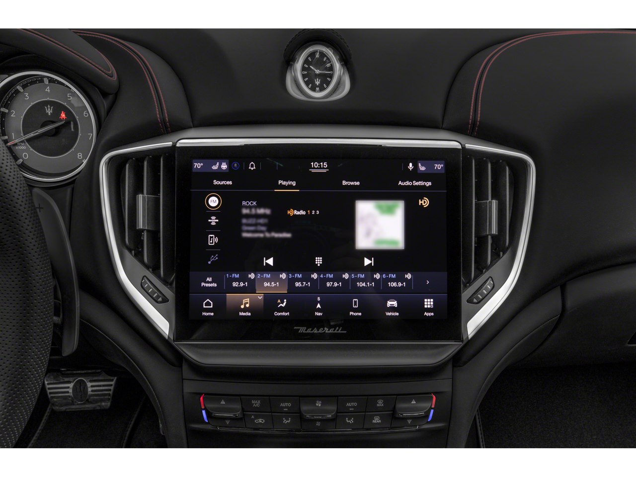 - Radio: AM/FM w/Maserati Intelligent Assistant -inc: 10.1" touchscreen display, navigation, HD Radio, SiriusXM satellite radio (1-year trial subscription), Maserati audio system (280 watts and 8 speakers), SD card reader, USB, aux-in, Apple CarPlay and Android Auto capable, Bluetooth® functionality, climate controls, OTA updates, Alexa in-vehicle voice assistant, eCall and bCall, remote diagnostics control, navigation services and App store