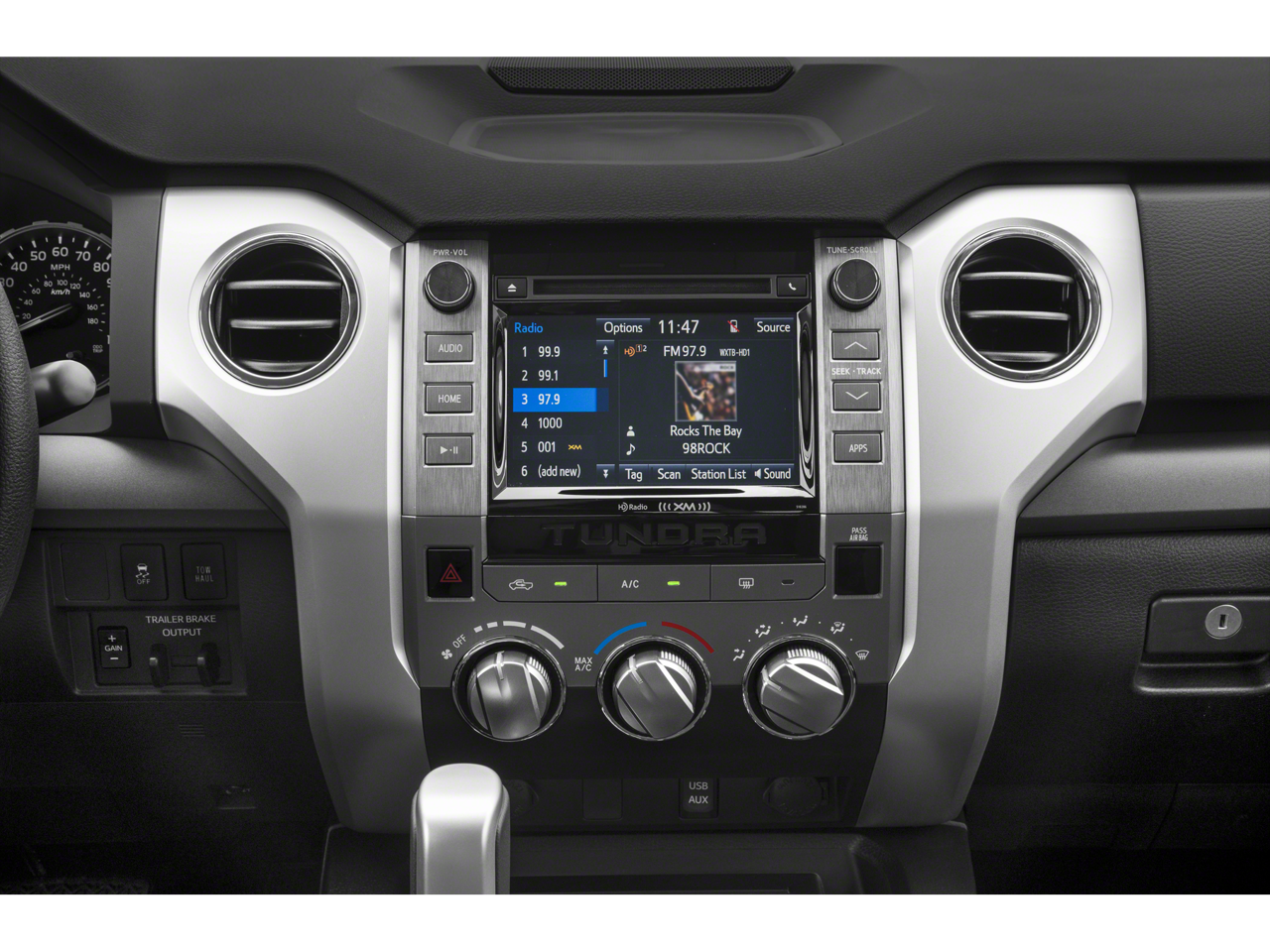 - Radio: Entune Audio Plus AM/FM/HD Radio w/CD -inc: MP3/WMA playback capability, 6 speakers, 7" high-resolution touch-screen display, auxiliary audio jack, USB media port, Bluetooth® hands-free phone capability w/Scout GPS Link app, advanced voice recognition, phone book access and music streaming and Siri Eyes Free, SIRIUSXM Satellite Radio, complimentary SiriusXM All Access 90-day trial subscription